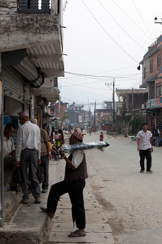 Und wieder haben wir kurz darauf Pech und stehen im Stau. Diesmal sind es jedoch keine Straßenarbeiten sondern die Strasse wurde von Maoisten gesperrt, weil es kurz vorher einen Verkehrsunfall mit einem Toten gegeben hatte und man so gegen das hohe Verkehrsaufkommen protestieren will. Ob diese Art tatsächlich zum Erfolg führt wage ich zu bezweifeln, denn nachdem die Straßensperre aufgehoben wurde, fuhren alle noch schlimmer als vorher, um die verlorene Zeit wieder einzuholen. Da wir keine Lust haben, auf unbestimmte Zeit im Jeep zu sitzen, machen wir uns einfach zu Fuß auf den Weiterweg. Irgendwann nach der Aufhebung der Sperre, wird uns der Jeep wieder einholen. nach einer guten Stunde Fußmarsch entlang der autoleeren Strasse geht es dann tatsächlich weiter.