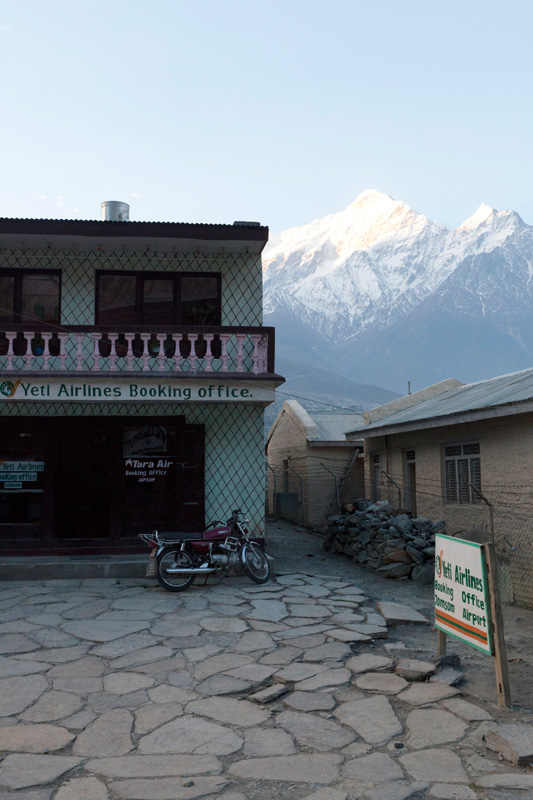 Auch das Hotel Majesty ist gut von indischen Muktinathpilgern besucht. Wir haben gerade noch Zimmer bekommen. Heute ist die Dusche wirklich nötig. Der Staub und der Sand sitzen in allen Poren. Unsere Trekkingtour geht nun zu Ende. Morgen früh werden wir mit dem Flugzeug von Jomosom nach Pokhara fliegen. Normalerweise geht die Annapurnaumrundung weiter durch das Tal des Kali Gandaki abwärts bis nach Beni. Leider haben wir dieses Jahr nicht die zeit diesen Streckenabschnitt zu gehen. Allerdings kennen wir den Weg auch schon Vor 2 Jahren sind wir von Mustang kommend weiter bis Beni gegangen. Wer sich also noch für diesen Teil des Weges interessiert schaut einfach im Mustang-Kapitel nach. Am Abend gibt es im Hotel die übliche Abschiedsfeier und Porterverlosung. Nabin, Biman und Bishnu haben während der ganzen Tour wie immer einen tollen Job gemacht. Und Hari hat mal wieder bewiesen, was für ein toller Guide und Freund er für uns ist. Am nächsten Morgen klappt alles wie am Schnürchen. Wir haben den ersten Flug. Um 6 Uhr müssen wir am Flughafen sein. Pünktlich um 7 Uhr heben wir mit der kleinen Twin Otter ab. Für nepalische Verhältnisse hat das alles perfekt geklappt. Wir haben noch einmal spektakuläre Ausblicke aus dem Flugzeug auf Dhaulagiri, Annapurna und Machapuchare. Um 7:20 landen wir in Pokhara fahren zum Hotel, frühstücken und genießen den Rest des Tages an der Lake Side und am Phewa Lake. Natürlich muss zwischendurch auch der Bart runter der inzwischen doch ordentlich gewachsen ist. Irgendwie ist damit die Tour wirklich zu Ende.