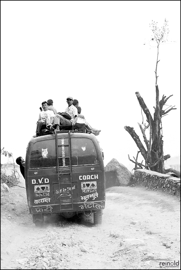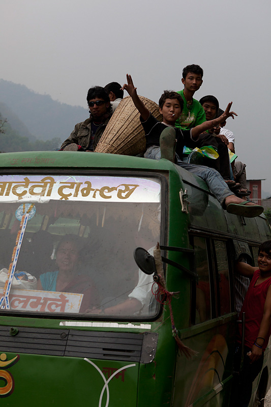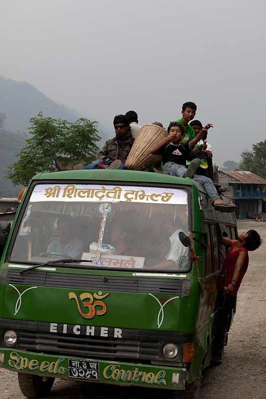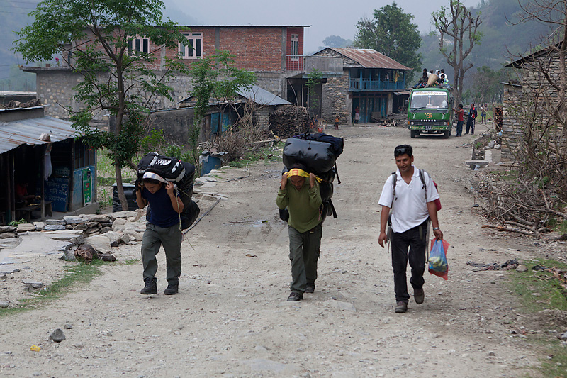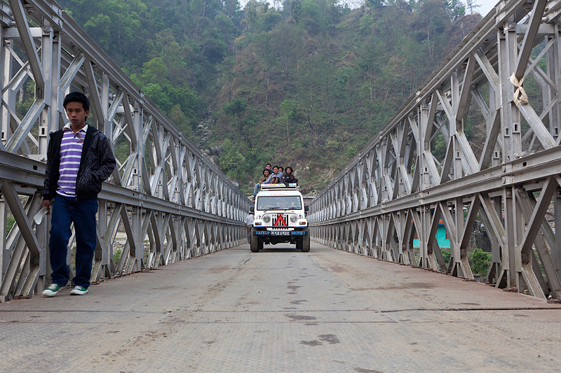 Kaum sind wir losgegangen bemerken wir, wie es ganz leicht anfängt zu regnen. Irgendwie ist das heute nicht unser tag. Zum Glück bleibt es dem leichten Fieselregen und wird nicht stärker. Uns sitzt nun ein bisschen die zeit im Nacken, denn in Nepal wird es gegen 18-19 Uhr schon dunkel um diese Jahreszeit. Eigentlich wollten wir noch bis Bhulbhule, aber das werden wir wohl nicht mehr schaffen. Khudi bietet sich da als nette Alternative an. Am Ortsende von Besishahar steigen wir rechts steile Stufen ab zum Fluss. Wir überqueren den Fluss und erreichen wieder die Strasse der wir nun leicht ansteigend folgen. Es herrscht ein reger Verkehr von Bussen, Jeeps und Mopeds. Ein gemütliches Wandern sieht anders aus.