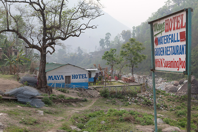 Das Maya-Hotel liegt wunderschön direkt am Fluss. Ein netter Garten lädt ein. Und da auch die Zimmer prima sind bleiben wir für heute hier. Der Tag wird mit einem leckeren Everest-Bier und einer Partie Tiger und Schaf verabschiedet.