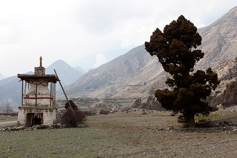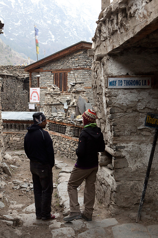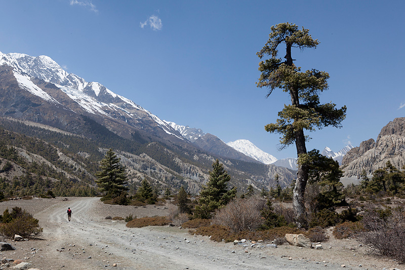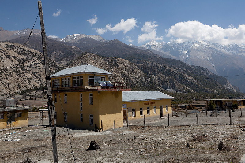 Heute heißt unser Tagesziel Manang; der letzte richtige Ort im Tal. Von Pisang aus geht es auf der linken Flussseite vorbei leicht ansteigend bis zum Flugplatz von Humde. Hier starten und landen kleine Twin-Otter Maschinen, die hauptsächlich von den wohlhabenden Einheimischen auch zum Materialtransport genutzt werden.