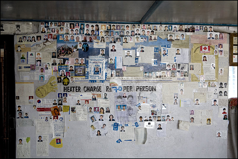 Vor der Lodge rutschen einige Einheimische auf Plastiktüten die Schneehänge herunter und haben richtig Spaß dabei. Während unserer Mittagspause fängt es draußen leicht an zu schneien. Wir machen uns deshalb schon bald wieder an den Abstieg zurück ins MBC. Der Abstieg über die Schneefelder geht rasend schnell. Man kann wunderbar auf den Schuhsohlen talabwärts rutschen. Die Lodge im MBC hat sich mittlerweile gefüllt. Eine internationale Gruppe aus aller Herren Länder hat den Raum schon in Beschlag genommen. Es findet sich allerdings auch für uns noch ein Platz, genauso wie für einen 77jährigen Israeli, der auch hier übernachtet und bereits 8 Mal hier oben war, wie er uns berichtet. Draußen ist es inzwischen bitterkalt geworden. Kaum vorstellbar, dass wir vor zwei Tagen noch unter der Hitze gestöhnt haben. Auch in den Zimmern ist es entsprechend kalt. Die Schlafsäcke können heute ihre guten Eigenschaften mal voll entfalten und zum ersten Mal wird im Schlafsack auch noch etwas angezogen.