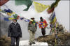 beginnt mit dem weiteren Abstieg. Vom MBC geht es nun noch einmal gut 300 Meter durch Schnee bergauf bis zum Annapurna Basecamp. Die Rucksäcke bleiben im MBC und nur in dicken Jacken, mit Mütze und Handschuhen geht es doch deutlich leichter. Leider verschlechtert sich das Wetter wieder rapide. Die Berge ziehen langsam zu und zum Schluss des Anstiegs laufen wir durch dicke Nebelschwaden. Wir sind froh, als wir die Lodges des ABC erreichen, wo wir Mittag machen. Vorher jedoch steigen wir noch die wenigen Meter zu einer kleinen Anhöhe herauf, um unsere mitgebrachten Gebetsfahnen anzubringen.