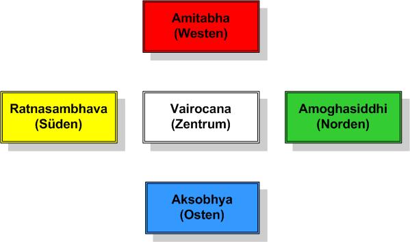 zugeordnet. Die schematischen Darstellung der transzendenten Buddhas weicht von