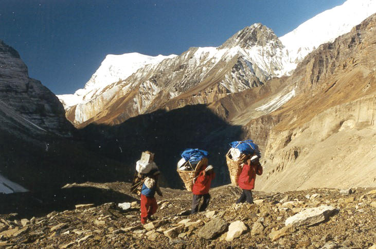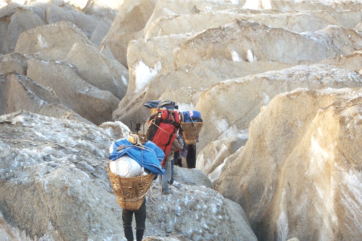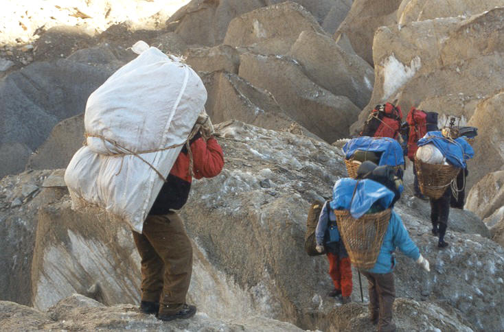 jedoch beobachten, wie unsere Träger auch diese heikle Passage ohne irgendwelche