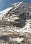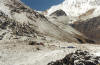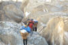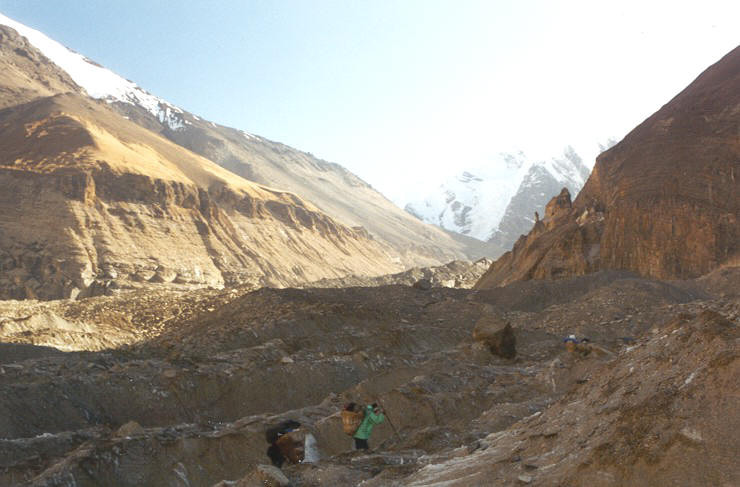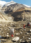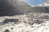 unsere Steigspuren. Da das Basecamp im Wirrwarr der Moränenhügel nicht zu sehen