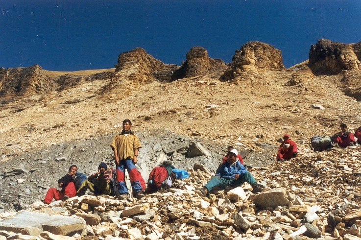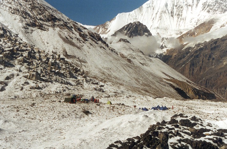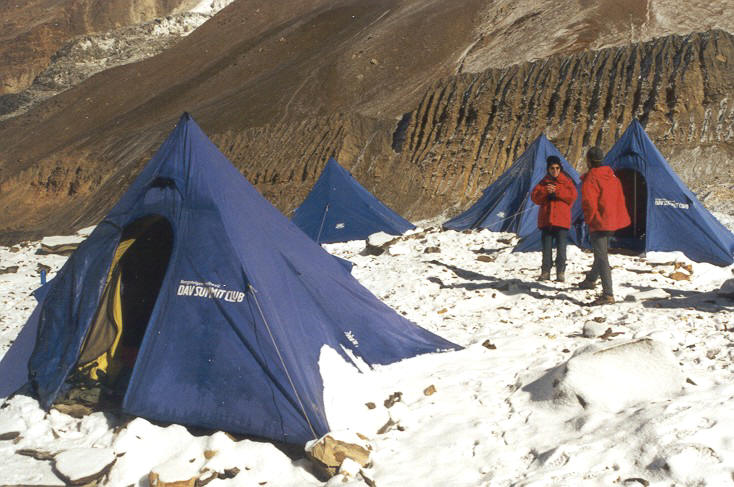 Zelten einer japanischen Expedition vorbei. Da die Bergsteiger offensichtlich am
