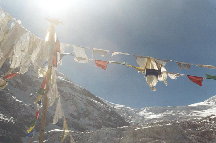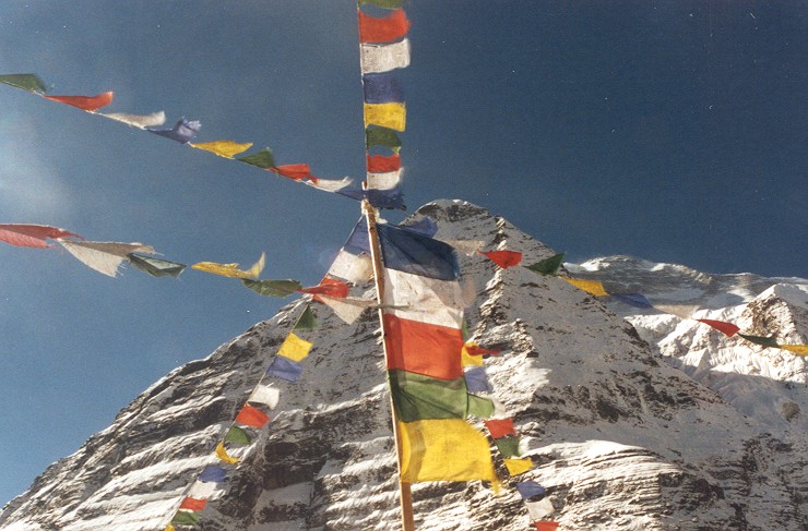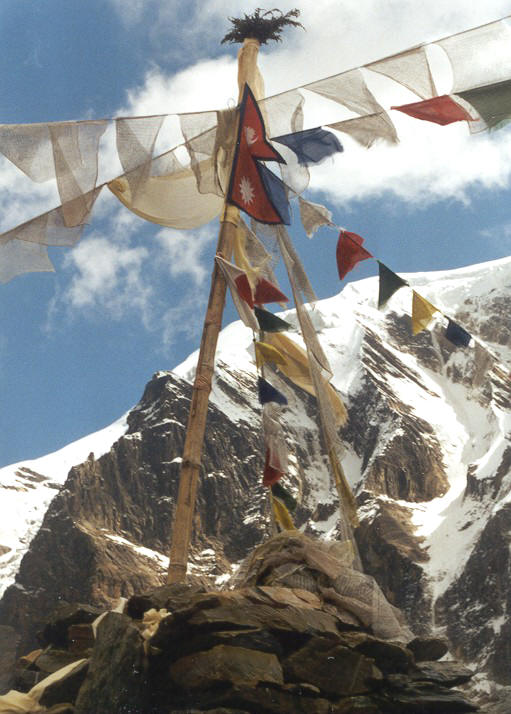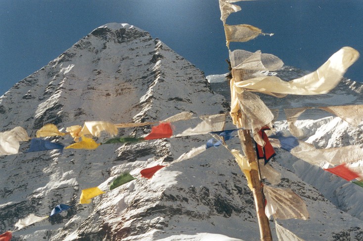 Dhaulagiri Westwand mit Gebetsfahnen (1)
