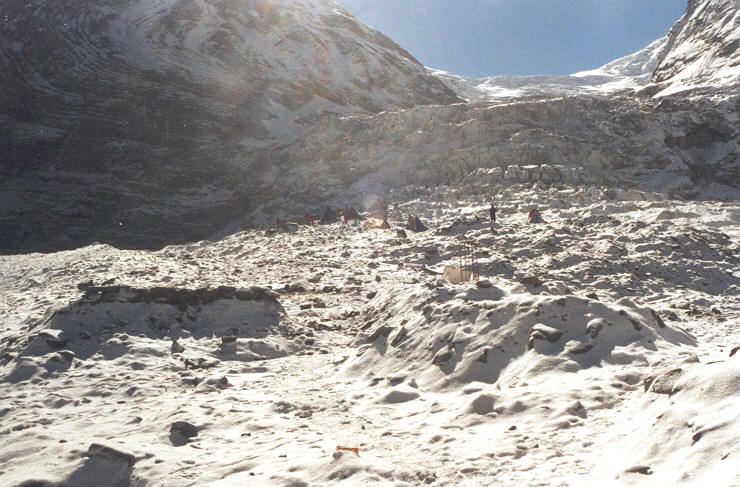 Wir steigen an den Zelten einer italienisch-spanischen Expedition und an den