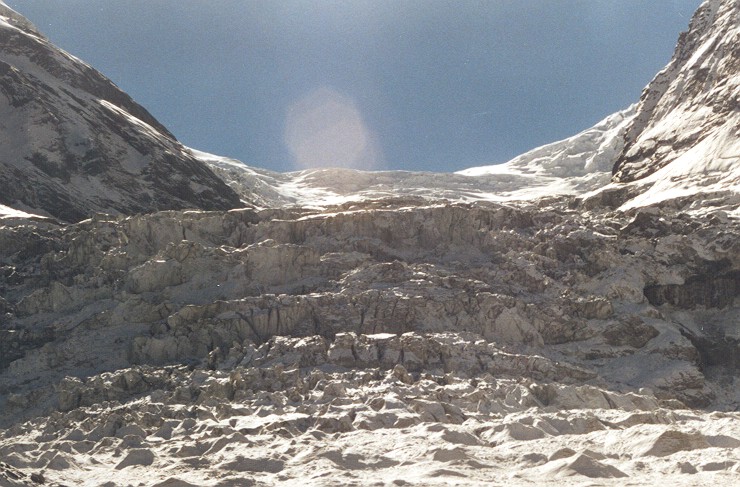In dieser Eis- und Steinwüste wirken die umliegenden Gipfel noch