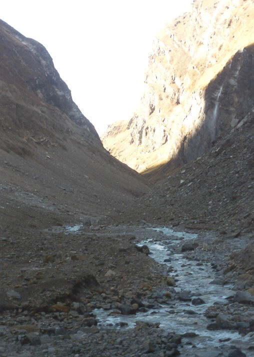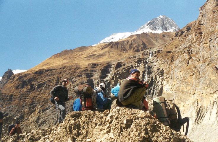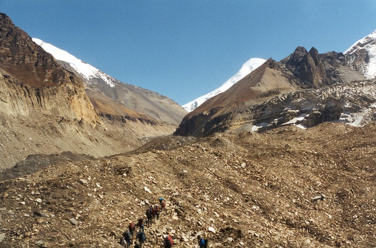 einer guten Stunde Gehzeit gelangen wir zu den Ausläufern des Chonbardangletschers. Dieser Teil des Gletschers ist vollständig mit Schutt