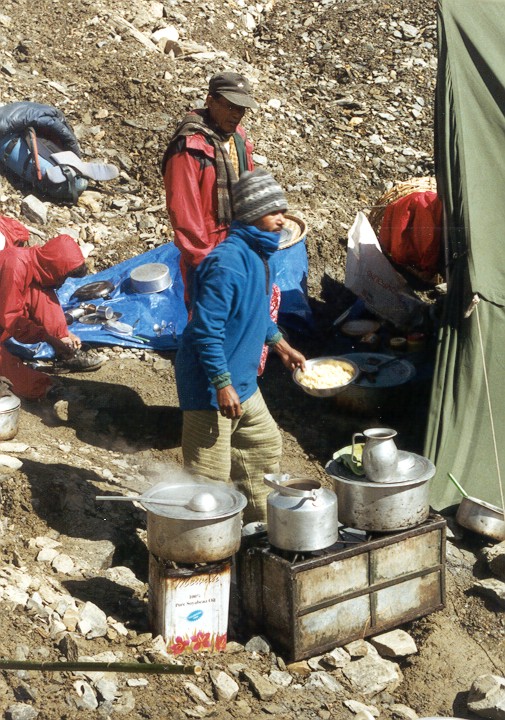 Im Japanercamp. Unsere Träger kochen