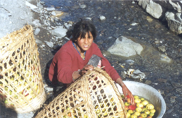 Überall im Ort kann man Äpfel kaufen. Beide Ortseingänge von Marpha haben