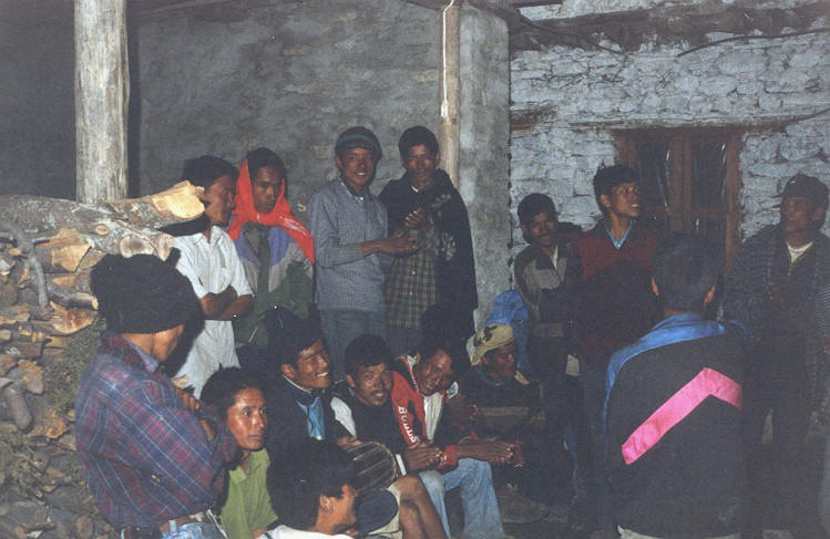 Gruppe entbehren kann, wird unter den Trägern verlost. Mit Gesang und Tanz