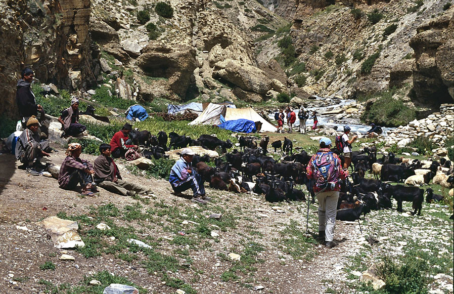 Die sind alle, wie wir dann erfahren, mit Yaks oder Mulis unterwegs in Richtung