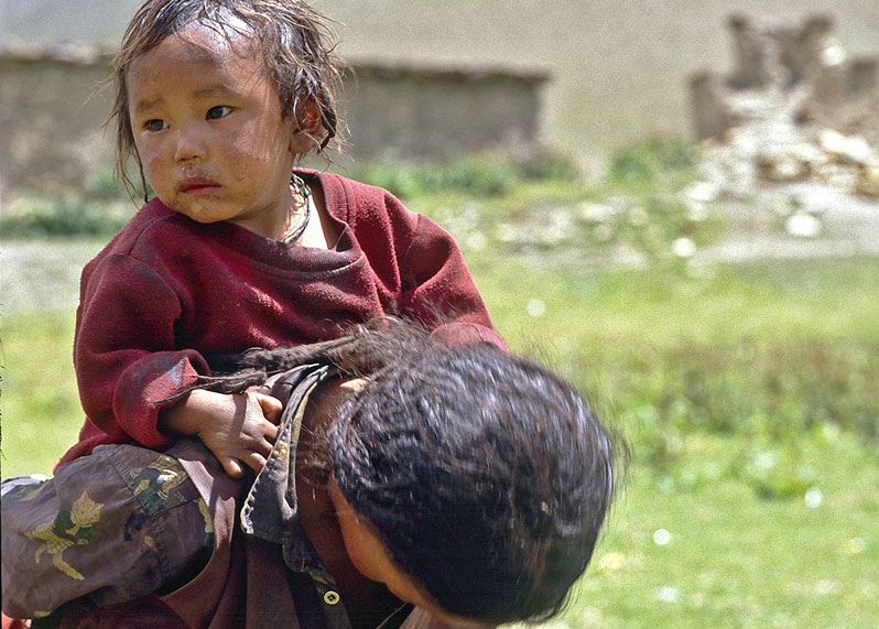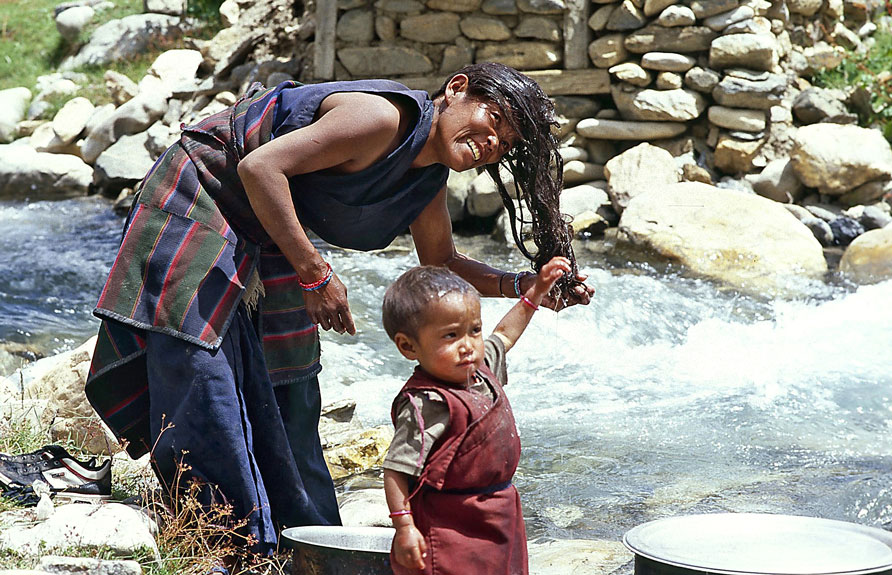 führt uns zu ihrer Mutter, die am Fluss ihre Haare wäscht. Das kleinste Kind,