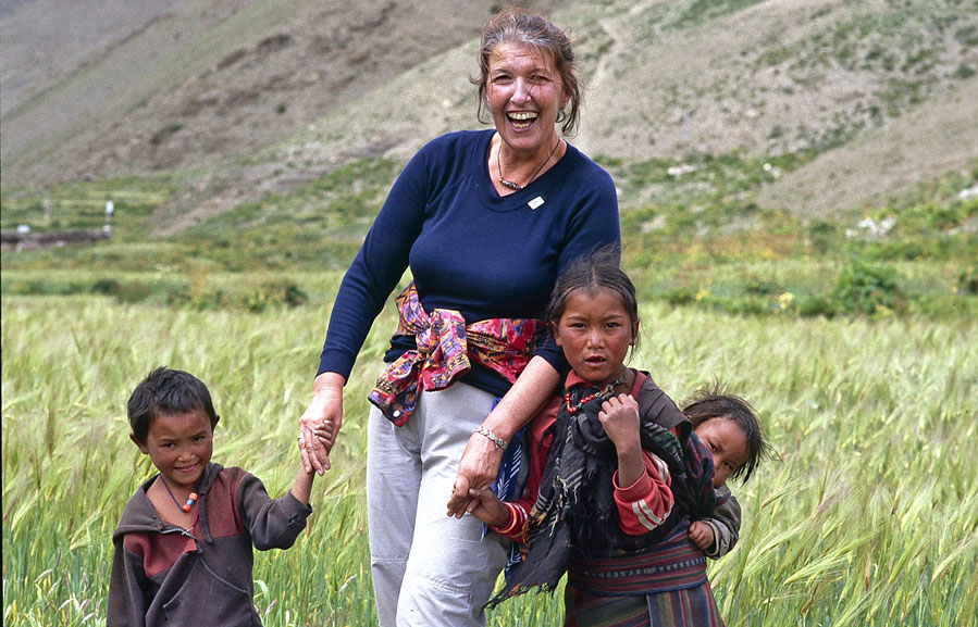 den Ort machen, begleiten uns die Kinder und zeigen uns Dho. An jeder Hand ein