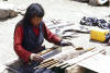 sitzen Frauen mit Webstühlen und weben wunderschöne Stoffe. Fast alle Frauen die man