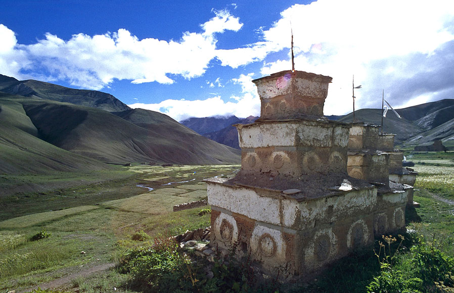 erreichen wir mit ca. 3800 Metern Höhe einen kleinen Pass mit einem Tschörten.