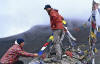 Wir befestigen wieder eine Gebetsfahne am Pass und sind