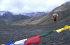 Tschörten und grosse Gebetsfahnen den Weg zum Kloster. Über einen kleinen