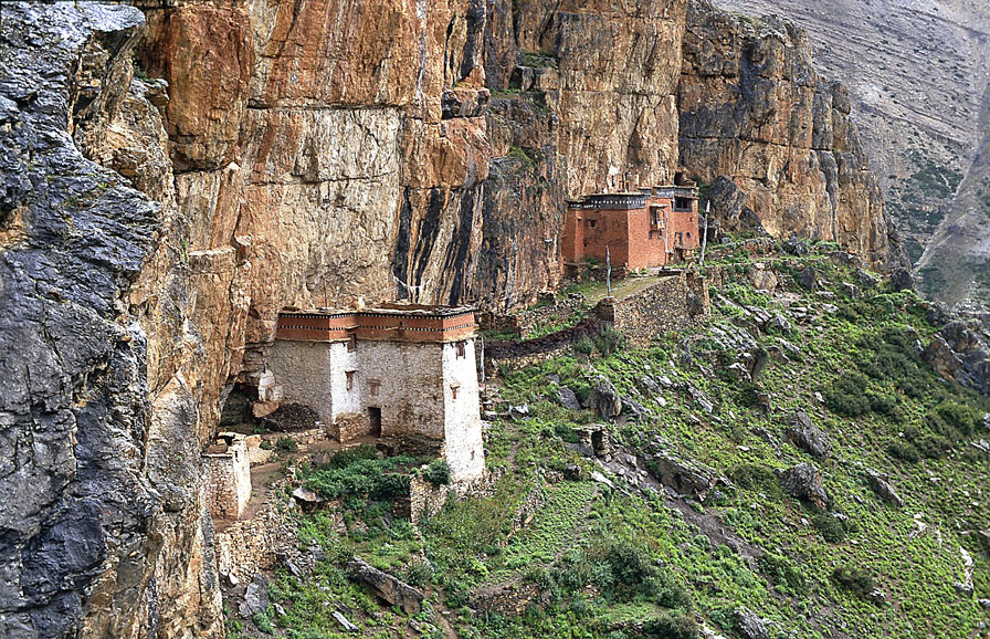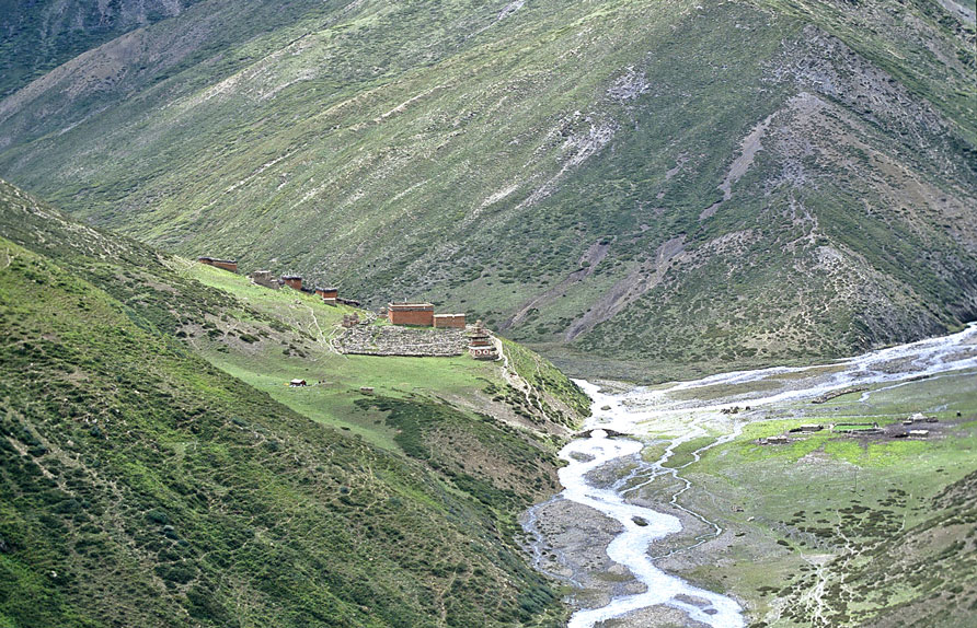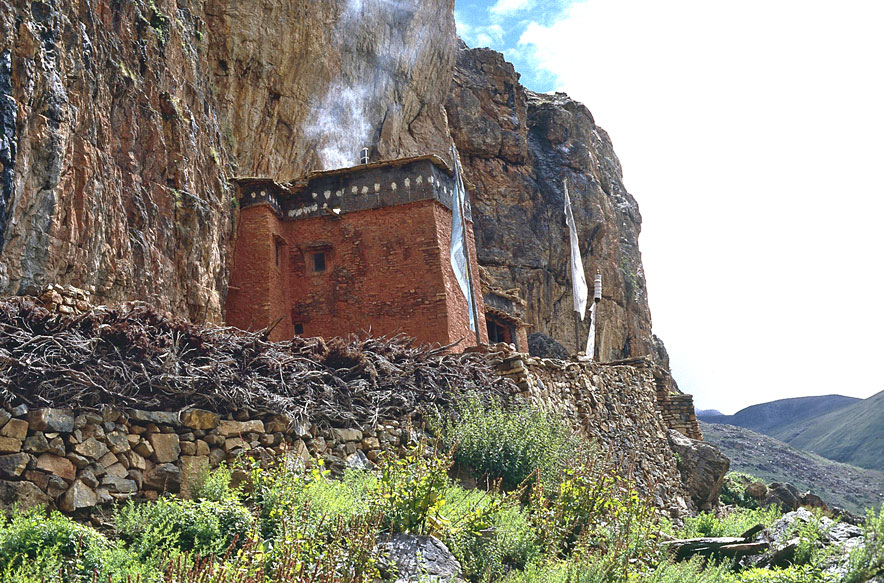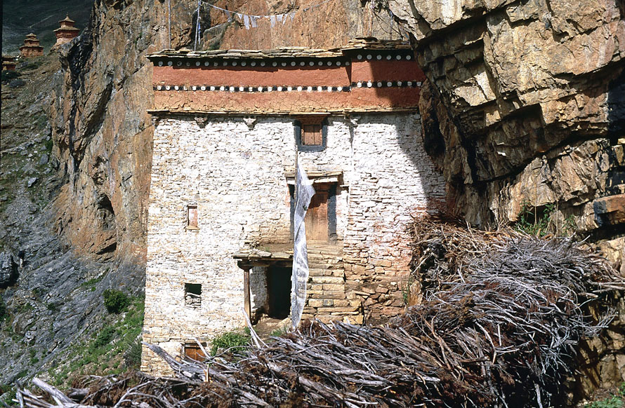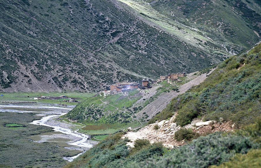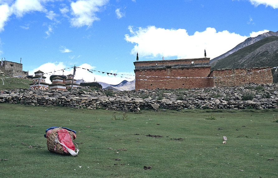 Die Gompa liegt am Hang über einem Talkessel, wo Sebu Khola