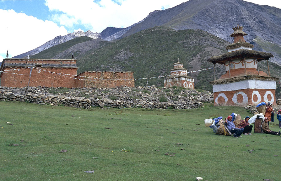 und Hubalu Khola zusammen fließen. Direkt hinter der Gompa finden wir auf einer