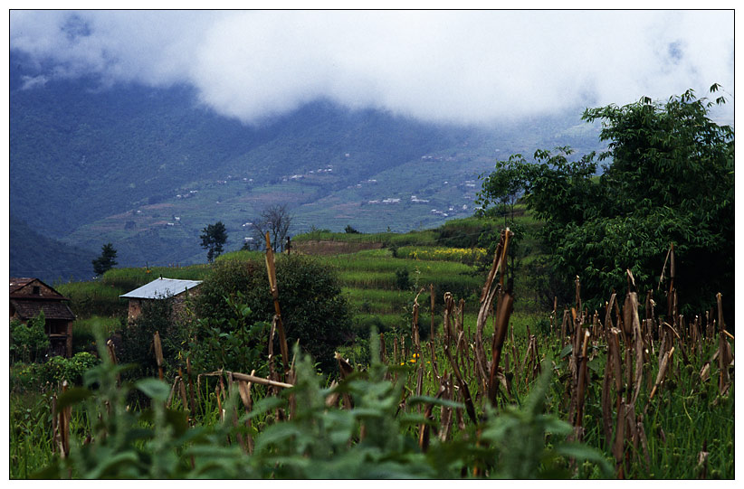 Bebauung hier unten ist noch relativ dicht für nepalische Verhältnisse und so finden