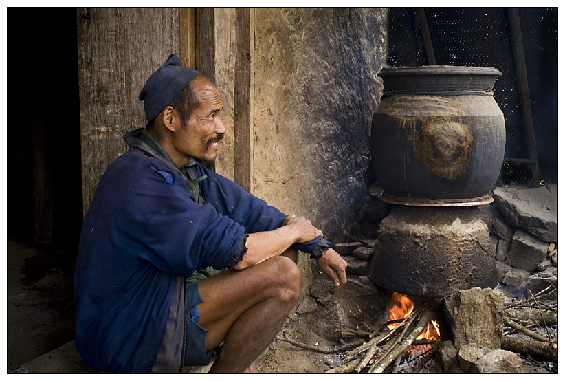 wir in seinen Hinterhof geführt, wo er eine kleine Rakshi-Brennerei betreibt.
