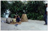 kleinen Hof vorbei. Ein Mann vor dem Haus zeigt uns sein aufgeschlagenes
