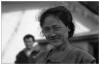 Eine junge Frau spricht eine längere Zeit in der Gompa mit