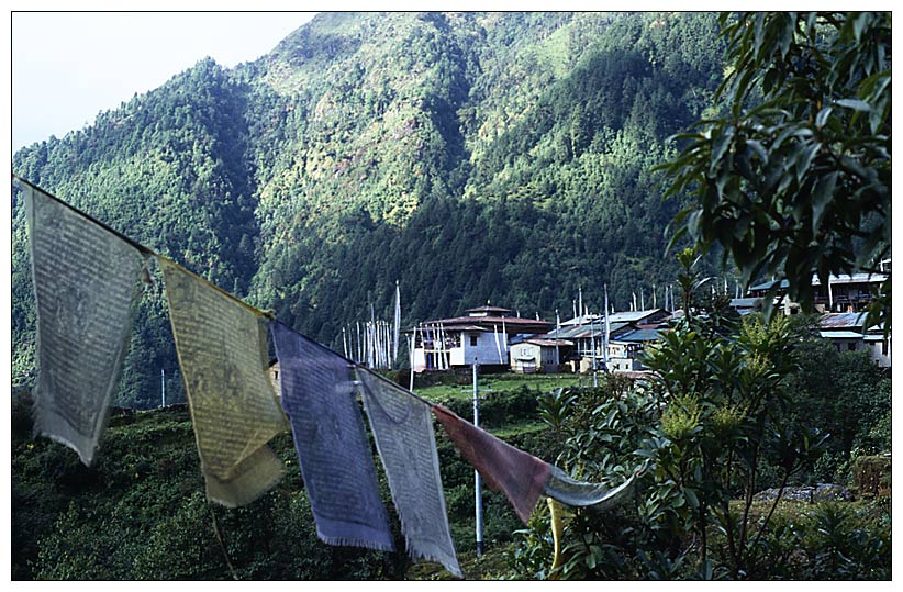 Unser heutiges Tagesziel Tarkeghyang (2500 m) ist schon