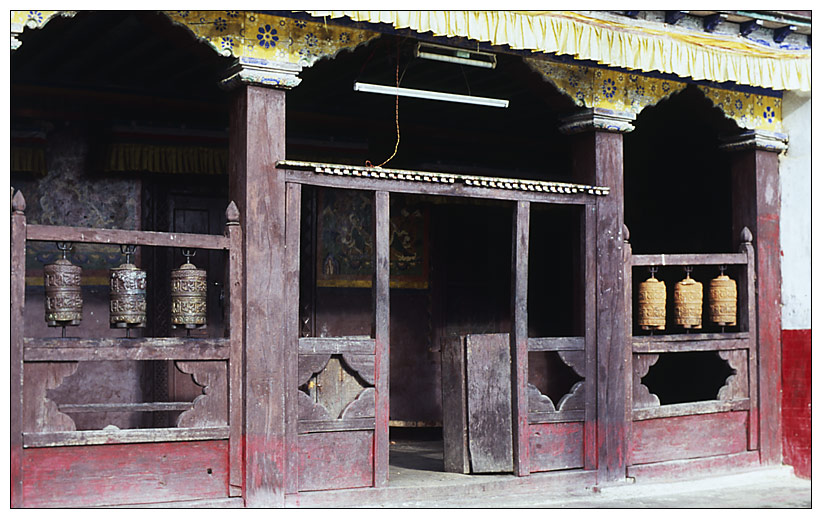 dicken Lettern an der Wand. Eine Nonne schließt uns die Gompa auf. Auch hier