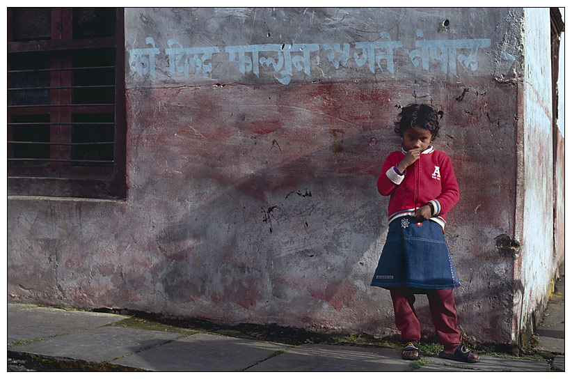 Vor der Gompa des Ortes fällt mir ein Mädchen auf, weil sie