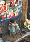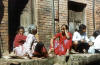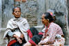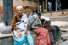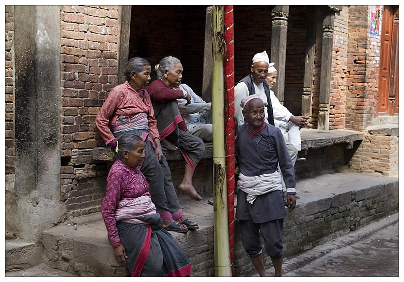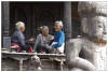 sich im Schatten der Tempel niedergelassen haben und sich angeregt unterhalten,