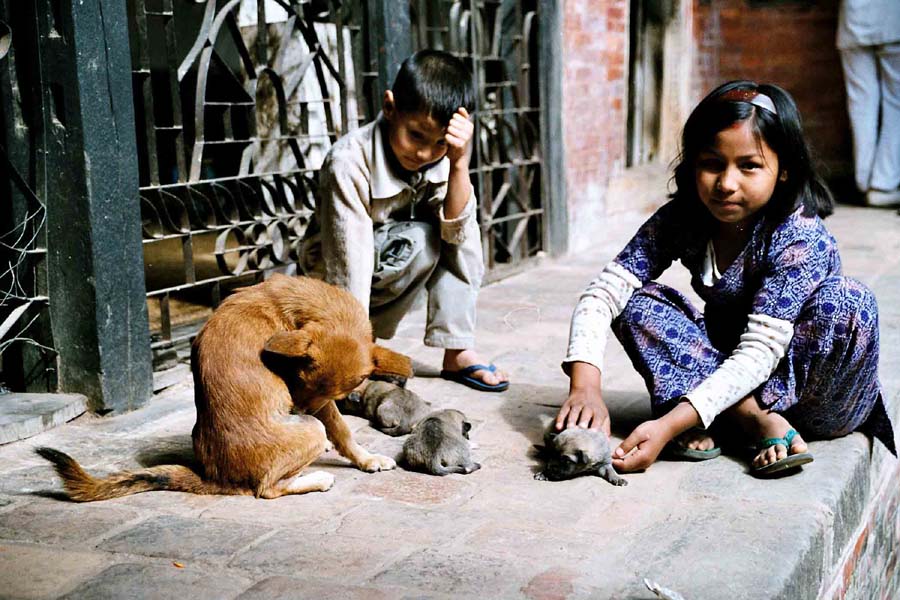 In einem Hof trafen wir einige Kinder die mit kleinen Welpen spielten. Die