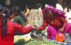 Gemüsekarren, die durch die Strassen gezogen werden, Träger, die Waren