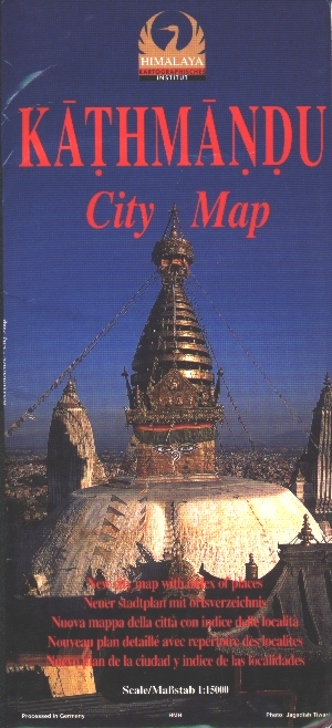 Gute Karte für das Kathmandutal. Stadtpläne von Kathmandu, Patan und Bhaktapur werden ergänzt durch Ausschnittskarten von Thamel, Kathmandu Durbar Square, Patan Durbar Square, Bhaktapur Durbar Square, Swayambhunath, Bodnath, Thimi und einer Übersichtskarte des Kathmandutales.