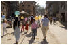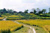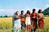 Wer Zeit hat, kann hier auch eine wunderbare Rundwanderung von ca. 2-3 Stunden um den Ort machen. Man wandert größtenteils durch Reisfelder und kleine Orte, die um den Hauptort Lubhu verstreut liegen. Im Oktober findet die Reisernte statt und die ganze Bevölkerung ist auf den Feldern anzutreffen, wo der Reis mühselig, ohne große technische Hilfe, geerntet wird. Die Frauen schneiden die Reisbüschel mit kurzen Sensen ab. Danach werden die Reiskörner über einen Rundtrommel mit vielen Spitzen abgeschlagen. Dies ist meist Männerarbeit. Die leeren Stängel werden dann in Büscheln zum trockenen zusammengestellt. Frauen sieben die Reiskörner dann durch, um sie von Blättern und sonstigen Resten zu befreien, die beim abschlagen mit genommen wurden. Auf großen Bastmatten wird der Reis dann zum trocknen ausgelegt, wobei er häufig gewendet werden muss. Die Arbeit wird fröhlich durchgeführt, was vielleicht auch an den großen Kannen Reiswein liegt, die überall auf den Feldern zu finden sind und aus denen häufig ein kräftiger Schluck genommen wird. Während unserer Wanderung fragten mich einige Frauen spaßeshalber, ob ich ihnen nicht bei der Ernte helfen wollte. Sie gaben mir eine Kurzsichel und ich stellte sehr schnell fest, dass diese Arbeit sehr mühselig ist. Nicht nur die ständig gebückte Haltung war ungewohnt; die Sicheln waren alles andere als scharf und der reis musste mehr abgeschlagen als abgeschnitten werden. Die Frauen hatten offensichtlich ihren Spaß, als sie sahen, wie ich mich abmühte und zu welchen Ergebnissen ich kam. Reisernte in Lubhu