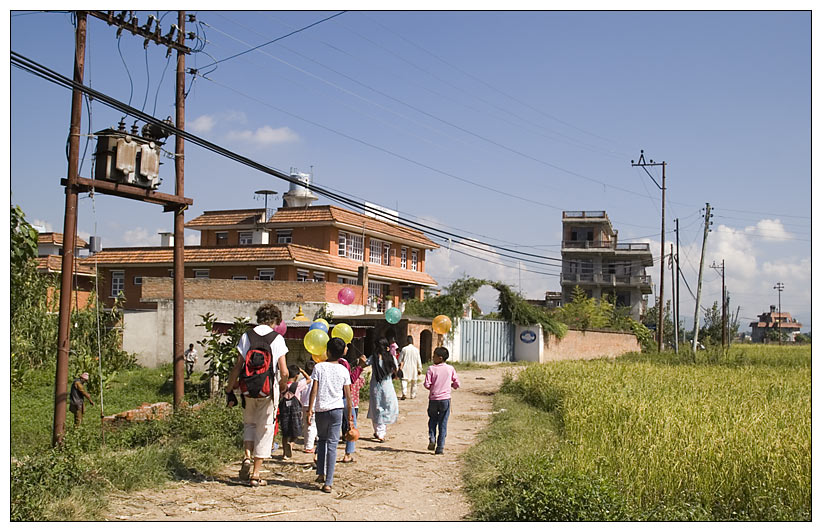 Ein Doppelklick auf ein Foto vergrößert das Bild! Lubhu ein kleiner Ort, ca. 10 Kilometer südlich von Patan gelegen, hat keine Sehenswürdigkeiten aus touristischer Sicht zu bieten. Auch ist die Fahrt auf der sehr schlechten Strasse in Richtung Panauti nicht gerade angenehm. Trotzdem lohnt sich der Ausflug. Man sieht einen Ort, in dem es noch sehr dörflich zugeht, in dem es aber auch, für nepalische Verhältnisse nicht gerade üblich, einige Produktionsstätten gibt. So kommt man z.B. an einigen Ziegeleien vorbei und sieht und hört im Ort aus fast jeden Haus einen Webstuhl arbeiten. Am Ortsrand befindet sich auch eine kleine Webfabrik. In Lubhu befindet sich seit Juli 2001 aber auch der Hauptsitz der Nepalhilfe Beilngries, die mit ihrem Kinderhaus Shaligram-Bhal Griha aus Patan hierhin gezogen sind. Am Ortsrand ist in 2 Jahren Bauzeit ein Kinderhaus für zur Zeit 21 Waisen- und Halbwaisenkinder entstanden, die hier eine optimale Betreuung erfahren. Die Nepalhilfe Beilngries unterstützt zudem noch einige weitere Projekte, über die man sich auf der Internetseite http://www.nepalhilfe.org informieren kann. Auch über den Link Nepalhilfe auf dieser Seite erhält man weitere Informationen. Rund um Lubhu