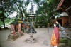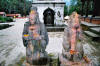 Schreine für Shiva und Krishna gruppieren. Aus einem Teich ragt eine alte Statue
