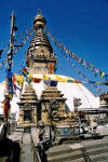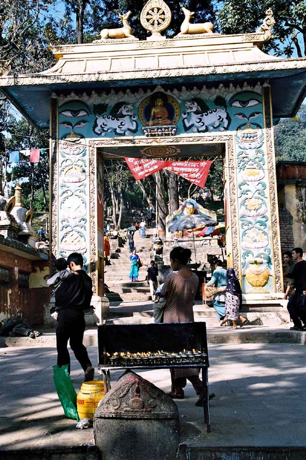 Treppenstufen hoch und gelangt in den Ortsteil Swayambhu, der schon sehr