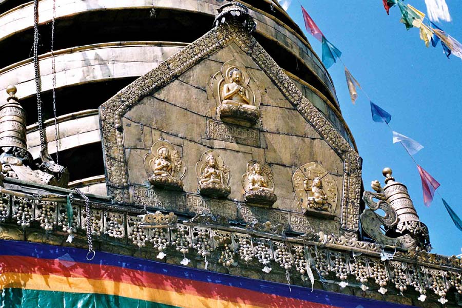 mit einigen Statuen des Buddhas des Ostens, Akshobya, gesäumt. Im unteren Teil