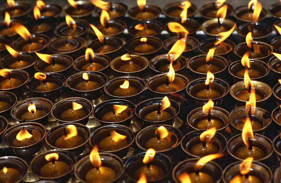 oder der Reinigung von Butterlampen beschäftigt sind. Man kann sich in den