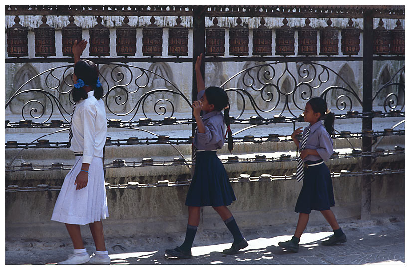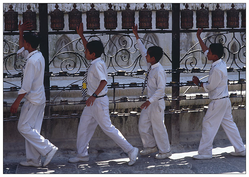 ruhiger als an dem großen Stupa. Der Weg hinüber ist mit Unmengen von