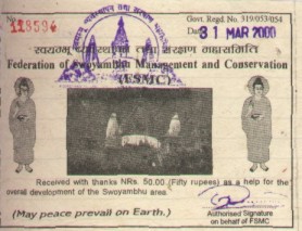 linken Seite ein kleines Häuschen, wo der Eintritt zum Stupa von 50 Rupies zu