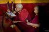 Im Innenhof des Klosters findet man immer einige Mönchen, die mit dem Auffüllen