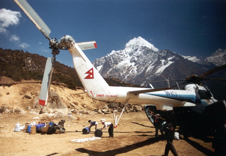 ein Hubschrauber um das Gepäck einer amerikanischen Everest-Expedition