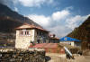 Hotel. Im Hintergrund rechts die Ama Dablam, ganz hinten mit der