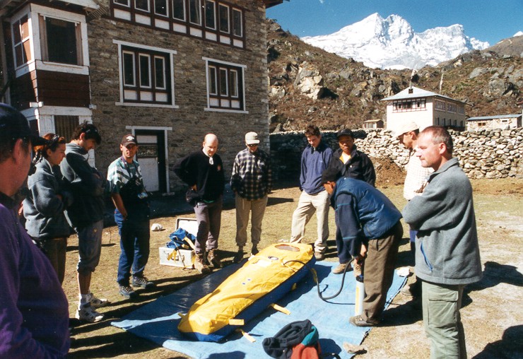 bei der Höhenkrankheit. Mit Hilfe des Sacks wird man